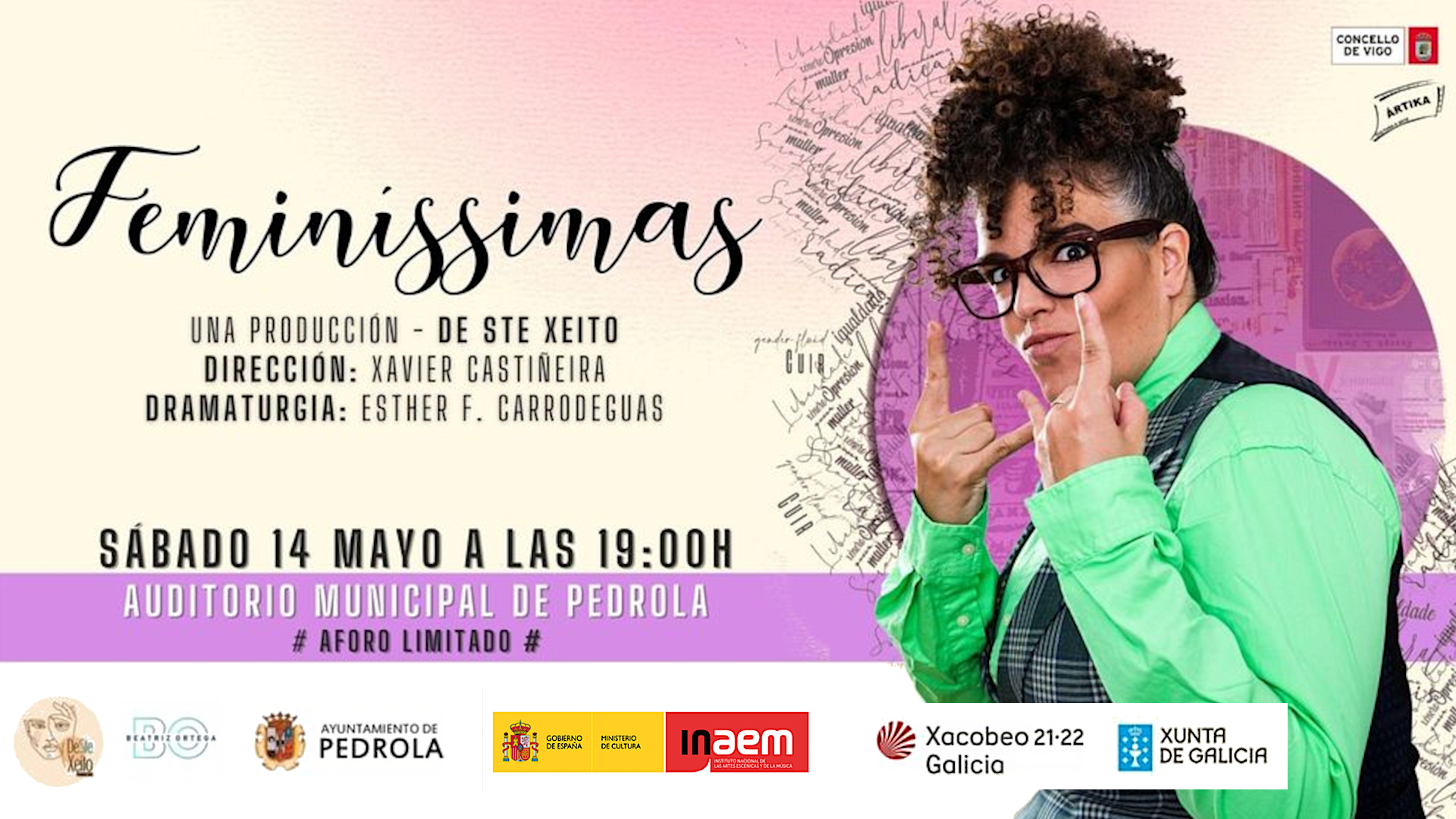 El Sábado 14 de Mayo, a las 19:00 horas, la compañía gallega De Ste Xeito Producións presentará Feminíssimas en el Auditorio Municipal del Ayuntamiento de Pedrola.