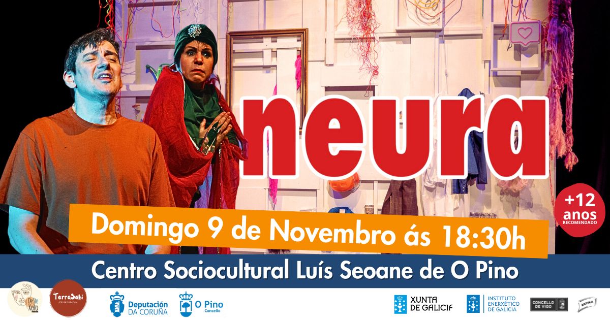De Ste Xeito levará a Centro Sociocultural Luís Seoanea a súa última comedia Neura, escrita e dirixida por Manuel Pombal e interpretada por Stephy Llaryora e Sergio Macías. A cita será o Domingo 9 de Novembro ás 18:30 horas.