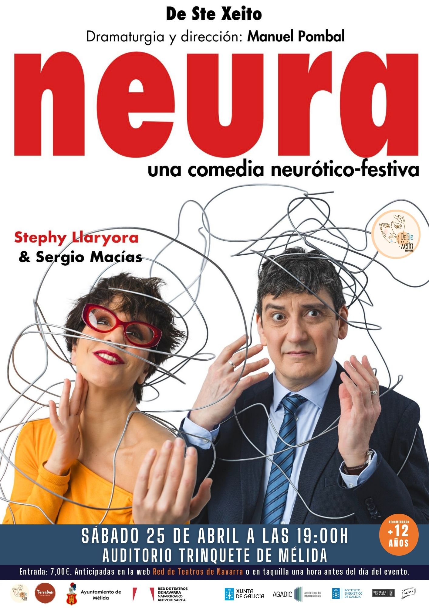 De Ste Xeito presentará no Auditorio Trinquete de Mélida a súa última comedia Neura, escrita e dirixida por Manuel Pombal e interpretada por Stephy Llaryora e Sergio Macías. A cita será o Sábado 25 de Abril ás 19:00 horas.