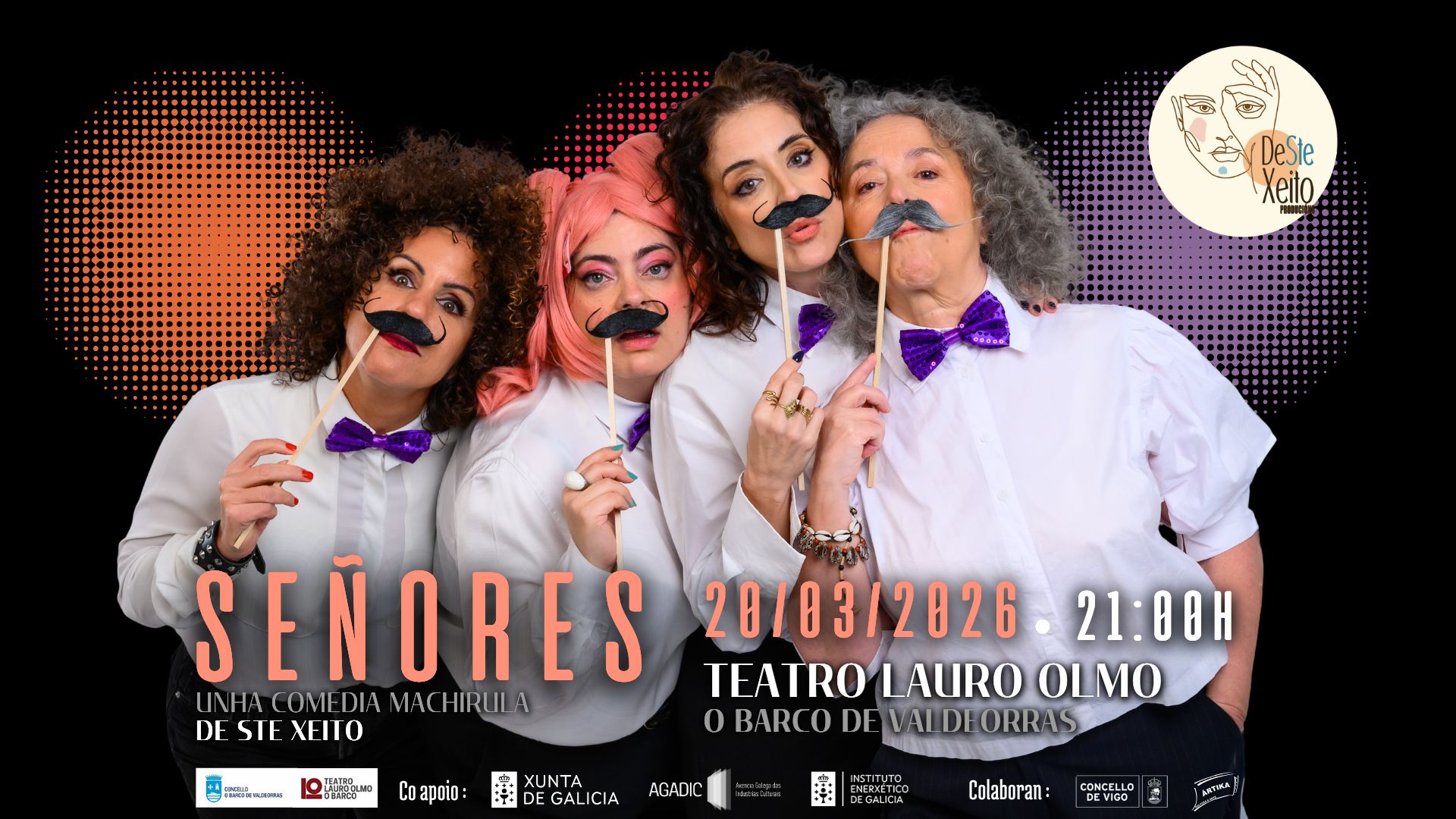 O Venres 20 de Marzo do 2026, De Ste Xeito Producións actuará no Teatro Lauro Olmo do Concello do Barco de Valdeorras coa súa nova comedia “SEÑORES”. Un espectáculo feminista onde hai mulleres que fan de homes que din o que deben facer as mulleres.
