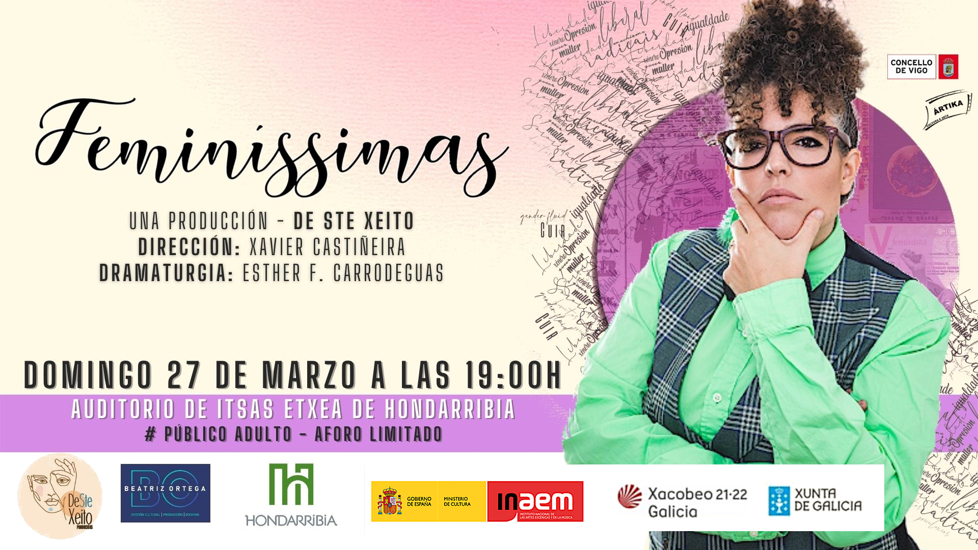 Este Domingo 27 de marzo. 19,00 h. De Ste Xeito Producións presenta Feminíssimas en el Auditorio de Itsas Etxea del Ayuntamiento de Hondarribia. Aforo limitado según normativa vigente. Público +12anos.