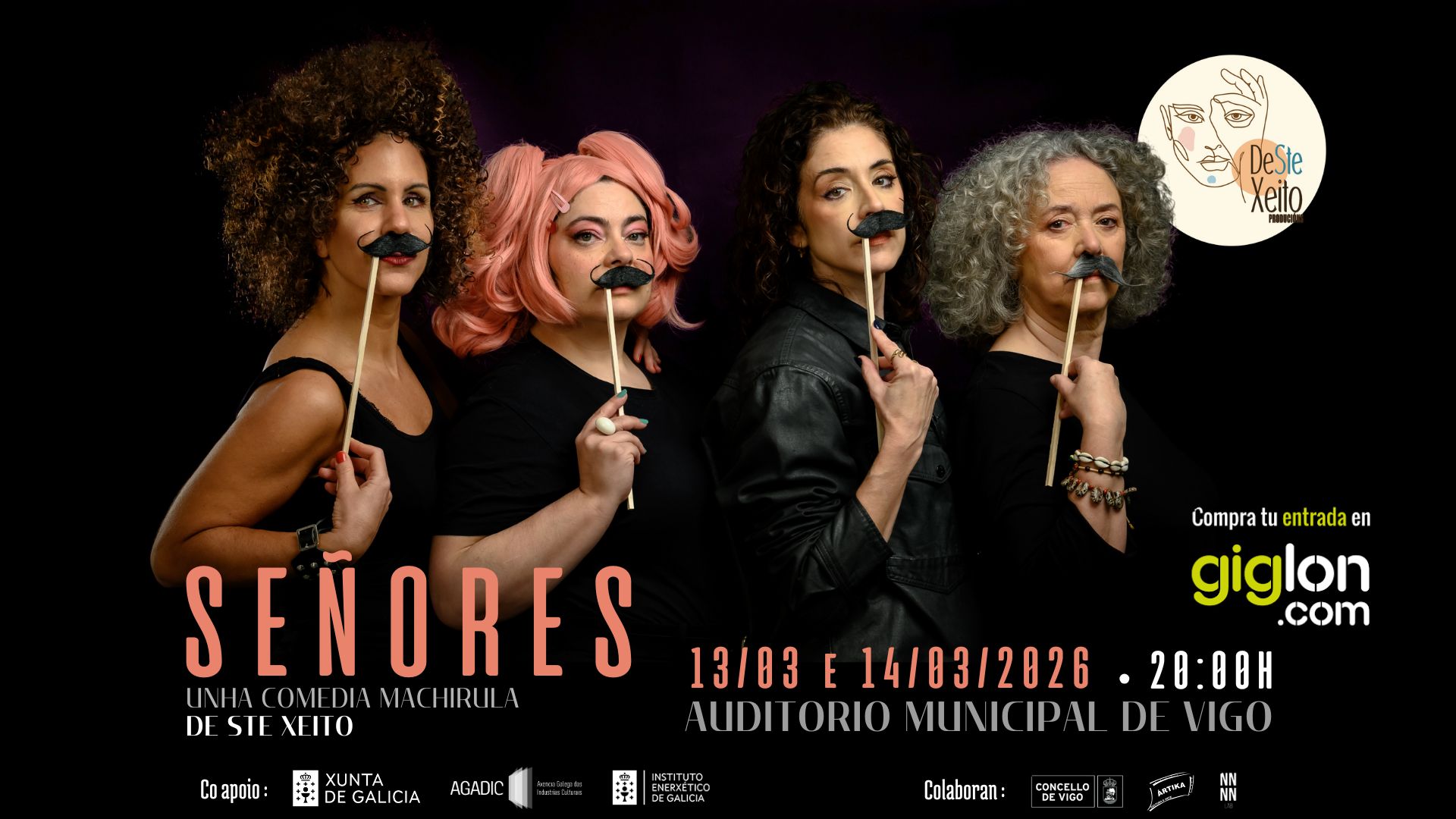 El Viernes 13 y Sábado 14 de Marzo del 2026, De Ste Xeito Producións estrena en el Auditorio Municipal de Vigo su nueva comedia “SEÑORES”. Un espectáculo feminista donde hay mujeres que hacen de hombres que dicen lo que deben hacer las mujeres.